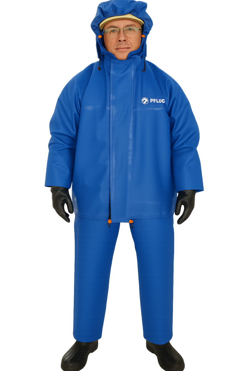 Protective suit against liquid chemicals and aerosols.