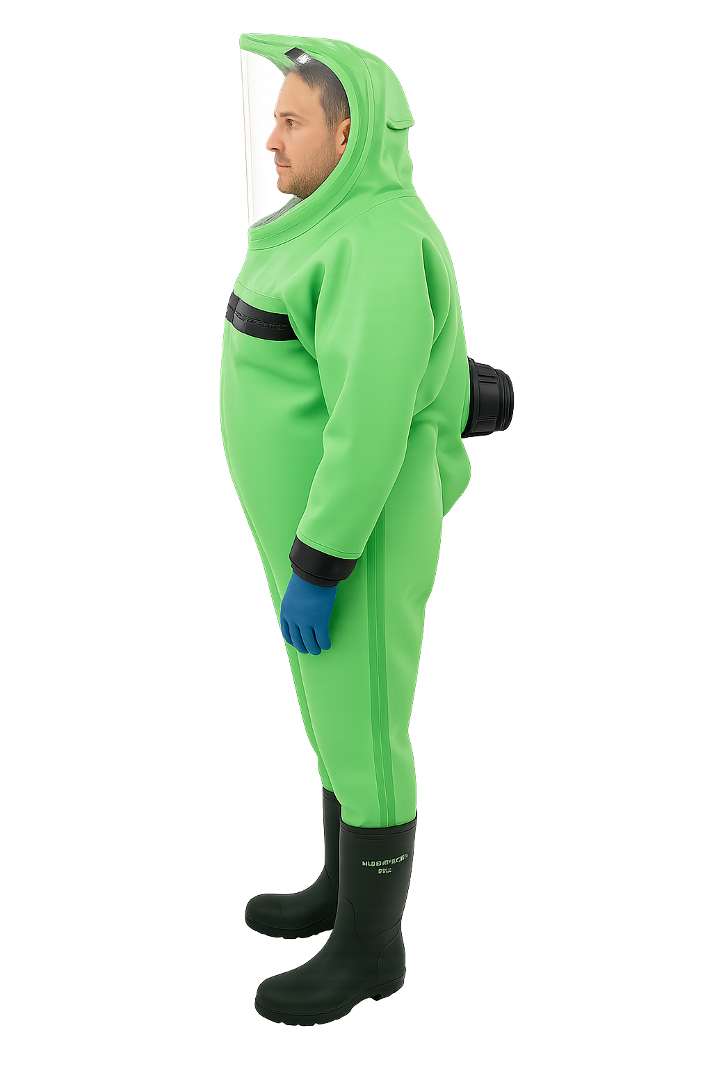 The e-breathe Splash 2 Inside is a one-piece positive pressure protective suit providing maximum protection against solid and liquid chemicals.