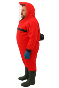 Equipped with a wide-view visor, safety boots, and gloves, the suit ensures both protection and flexibility.