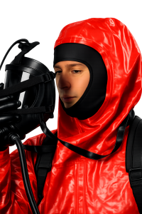 Gefertigt aus einem robusten, zugleich weichen und langlebigen Spezialmaterial, verbindet der Anzug maximale Sicherheit mit hohem Tragekomfort. Das nicht-umschließende Design mit rückseitigem Einstieg und anatomisch geformter Gesichtsdichtung sorgt für eine sichere Abdichtung bei gleichzeitig hoher Bewegungsfreiheit. Das Atemschutzgerät wird außerhalb des Anzuges getragen.